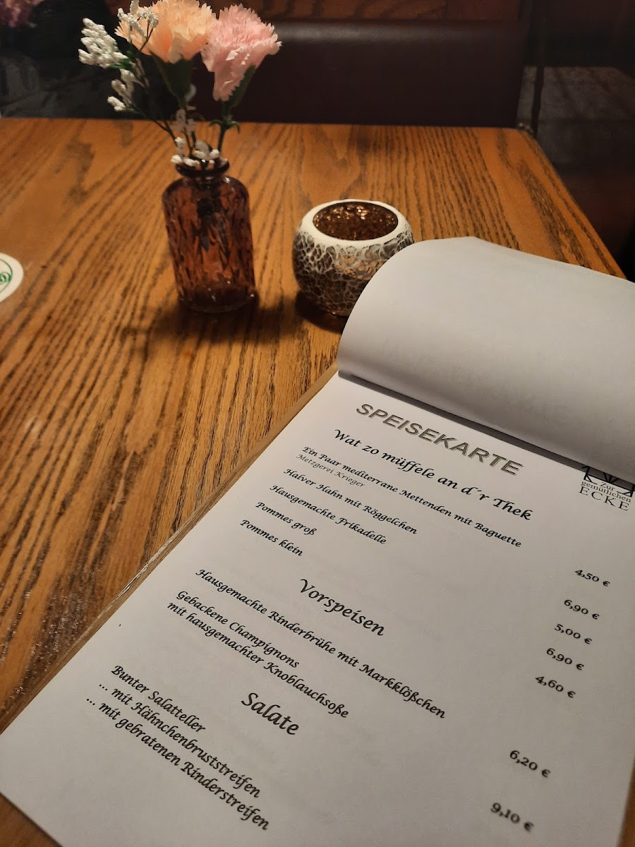 The dessert selection is equally delightful, featuring the irresistible Kleines Gemischtes Eis (€5.50). With its attentive service and charming beer garden, this restaurant invites you to unwind and relish every bite, making it a must-visit spot for locals and tourists alike.